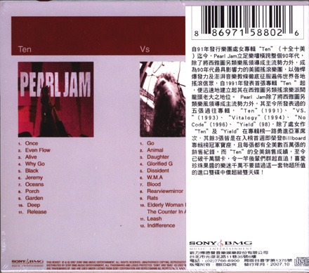 Ten: 1. Once 2. Even Flow 3. Alive 4. Why Go 5. Black 6. Jeremy 7. Oceans 8. Porch 9. Garden 10. Deep 11. Release |